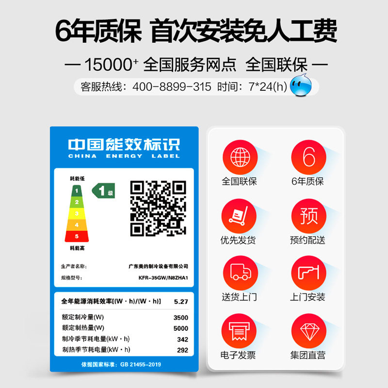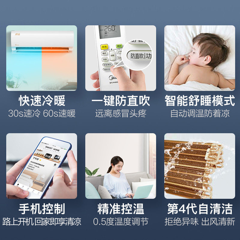 Midea air conditioning big 1 5 p new first-class energy efficiency variable frequency wall hanging machine household cool gold 35ZHA1 smart appliances