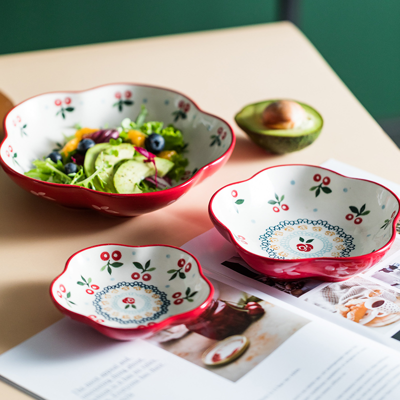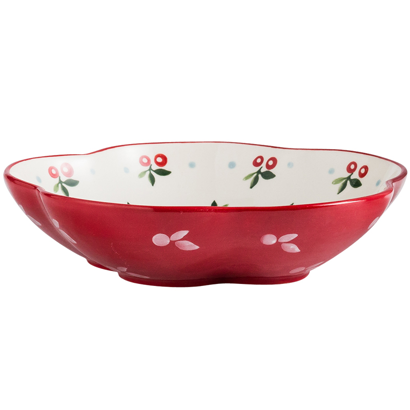 Hufu Hand Painted Cherry Plum Blossom Shaped Dinner Plate Dip Saucer Salapan Plate Soup Pan Dessert Snack Tray Irregular Pan
