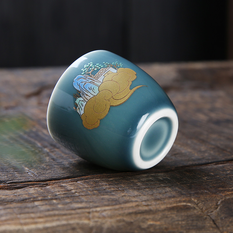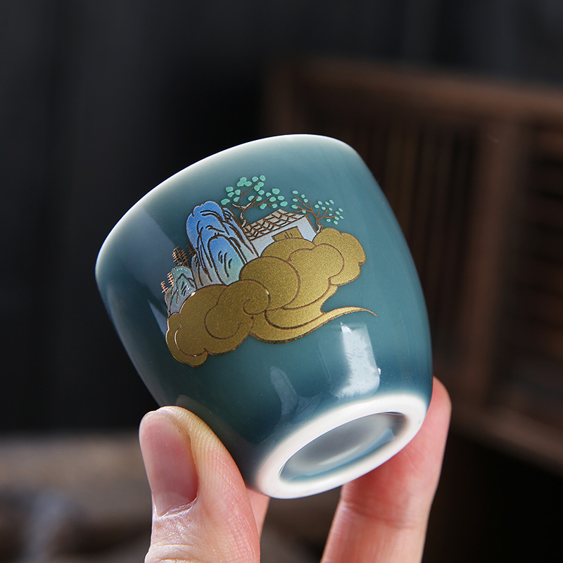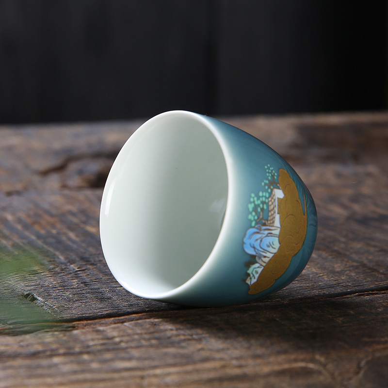 Blue Ceramic Pint Tea Cup Sketching Master Cup Kung Fu Small Tea Cup Home Minimalist Personal Cup Tea Set Cup tea