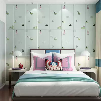 3d three-dimensional wall sticker self-adhesive wallpaper Mediterranean cartoon men and women children's room bedroom warm kindergarten anti-collision wallpaper
