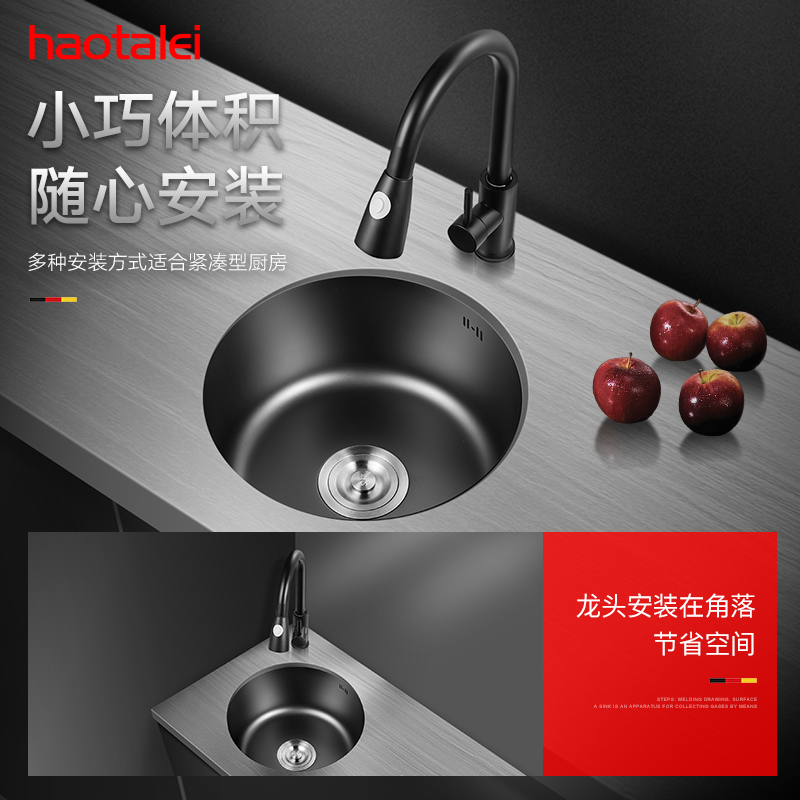 4242A matching sewer 4242B with black round tap 4242C paired with black square tap 4242D paired with black smoke bucket pull tap 4242E paired with black kitchen