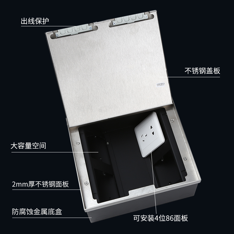 Stainless steel marble tile flat hidden flip open four-position 86 panel ground floor socket