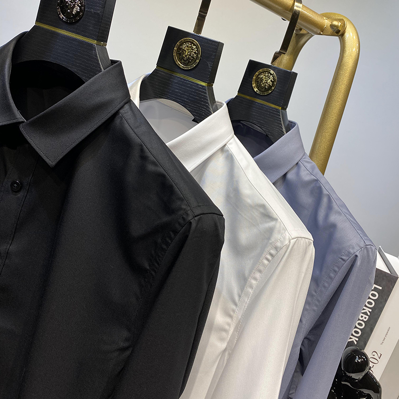 Company goods thousand yuan level Tencel bamboo fiber iron-free anti-wrinkle men's high-end business casual silk shirt