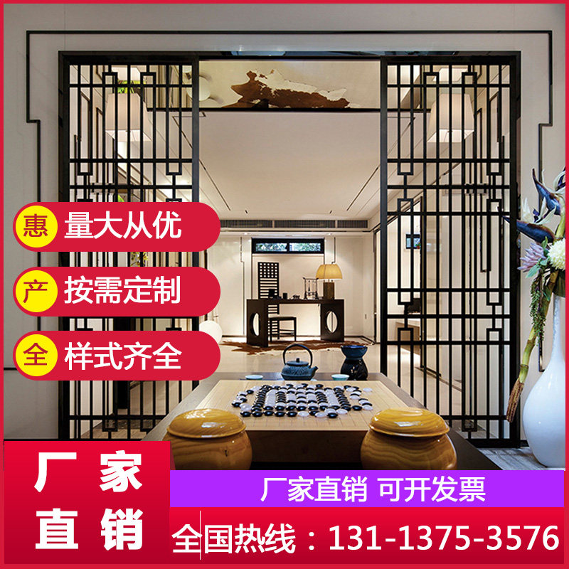 Indoor outer partition aluminium windows flower wood grain aluminum screen square pipe welding hollowed-out screen partition Chinese flower lattice customisation