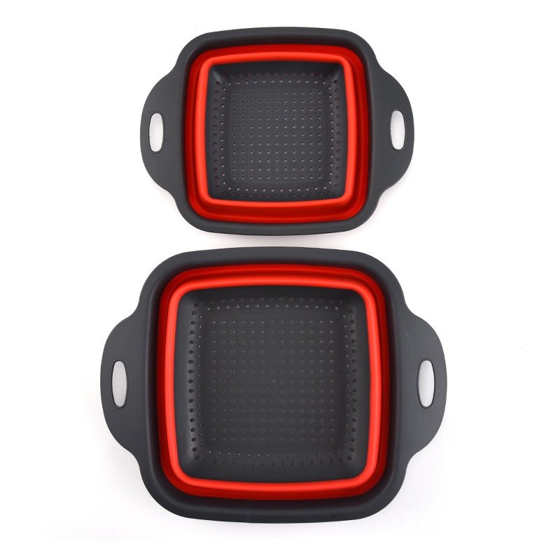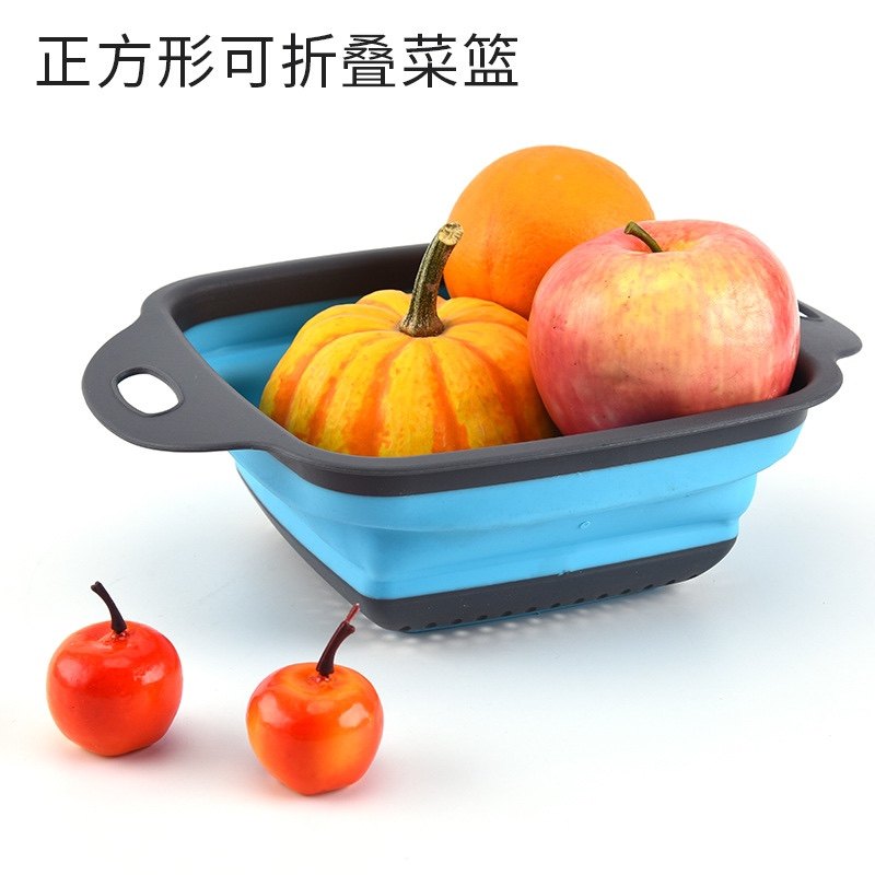 Export single two-piece set square foldable drain basket Silicone water filter basket folding fruit basket Vegetable basket