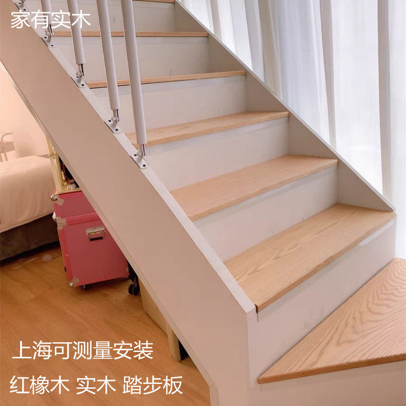 Red oak solid wood stair tread board handrail is customized to do log processing bay window panel window sill board word partition