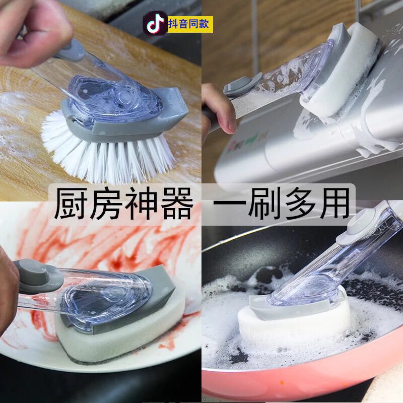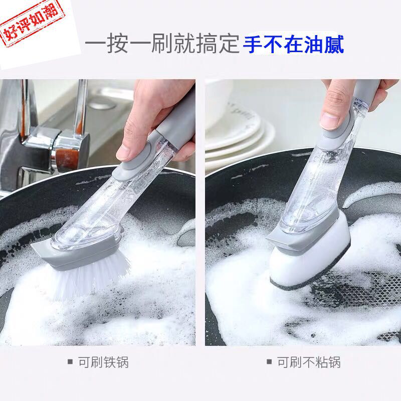 Kitchen wash brush hydraulic brush automatic liquid filling multi-function long handle does not hurt hands dishwashing brush cleaning artifact
