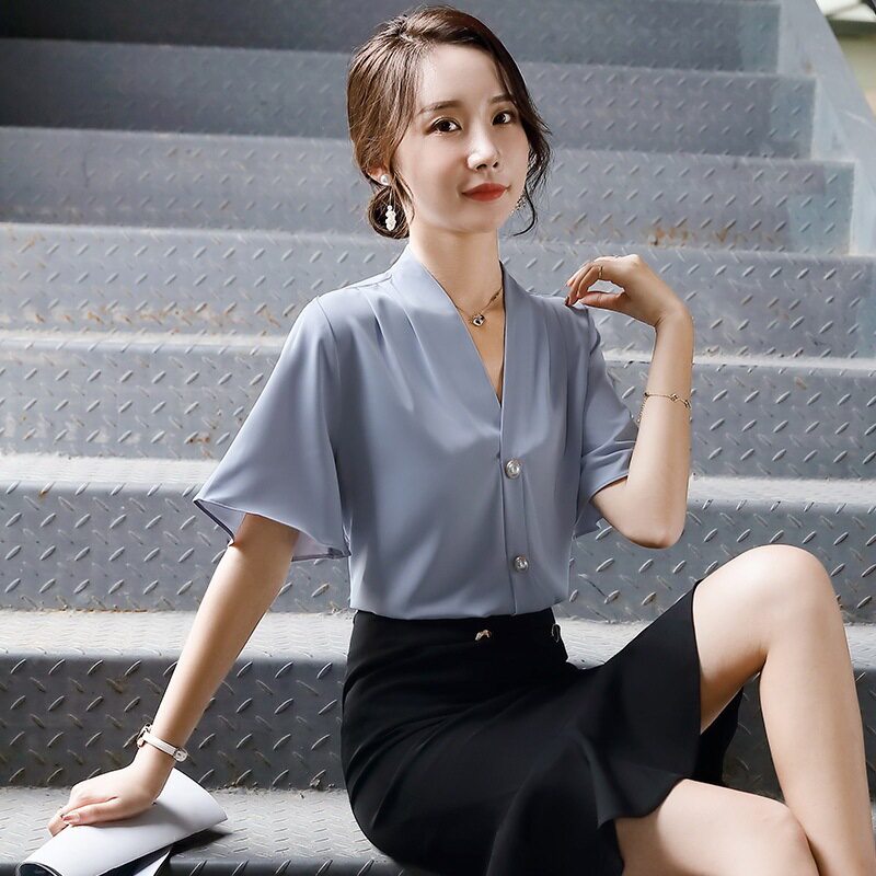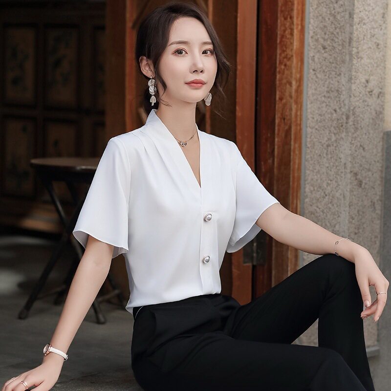 Fate born Western style chiffon shirt 2022 summer new Korean version short-sleeved loose thin women's top