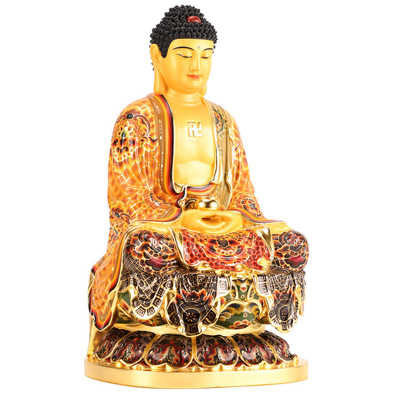 Taiwan hand-painted pure copper Three Treasures Buddha statue Amitabha Buddha statue Medicine Buddha Shakyamuni Buddha Buddha ornament