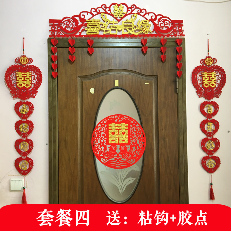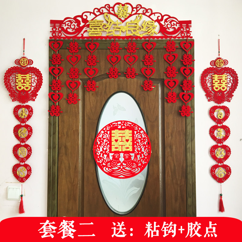 Wedding Celebration Supplies Door Head Lakflower Decoration Sticker Painting Wedding House Arrangement Door Lintel Xi Calligraphy Door Curtain Romantic Bedroom Decoration Hanging Accessories