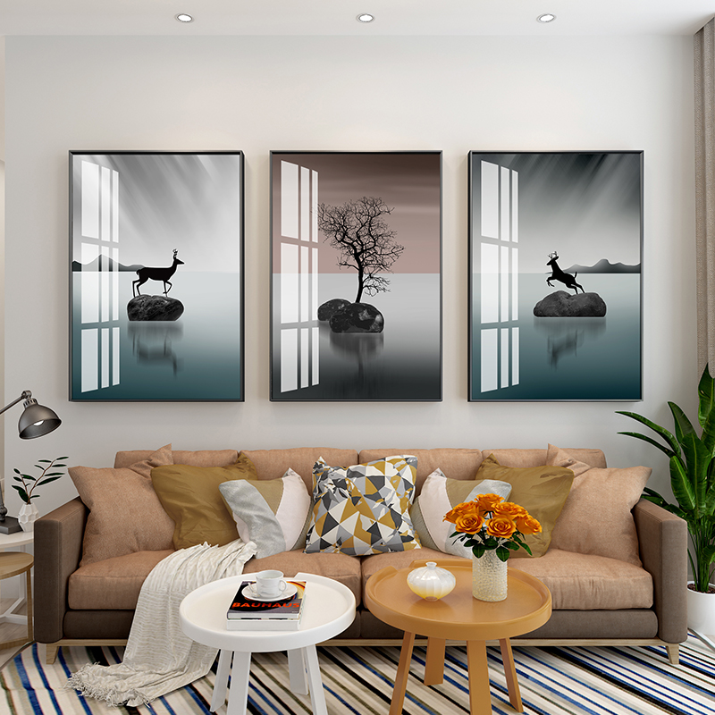 Nordic Minimalist Living Room Decoration Painting Dining Hall Wall Hung Painting Fresco Composition Light Lavish Sofa Background Wall Triptych