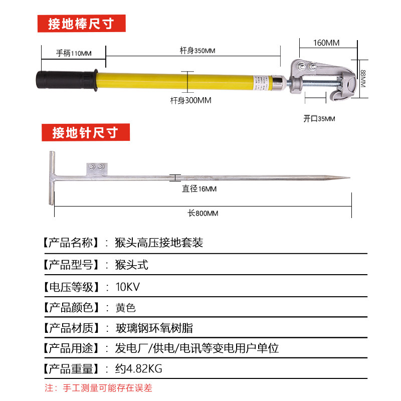 Outdoor high-pressure connection grounding line 10kv high-pressure grounding wire clamp monkey head type short circuit low pressure grounding line 400v grounding stick