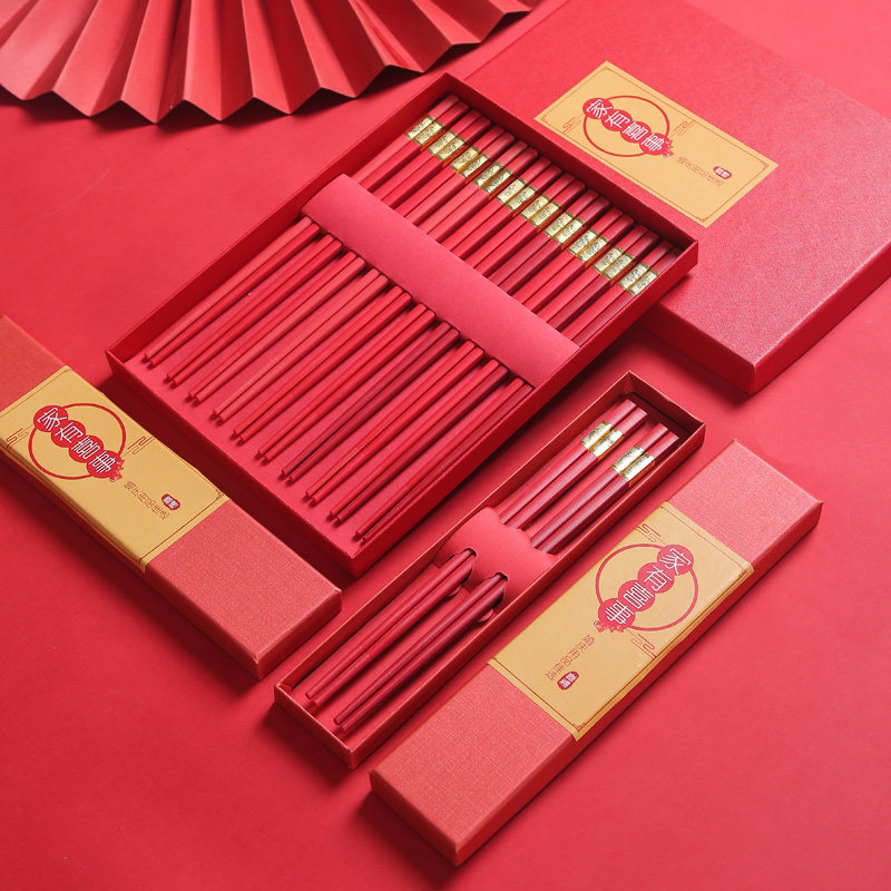 High-end Red Chopsticks Wedding Festive Chopsticks Red Disposable Pair Chopsticks Set Wedding Non-slip Alloy Chopsticks