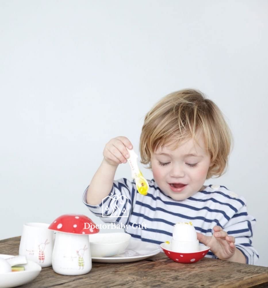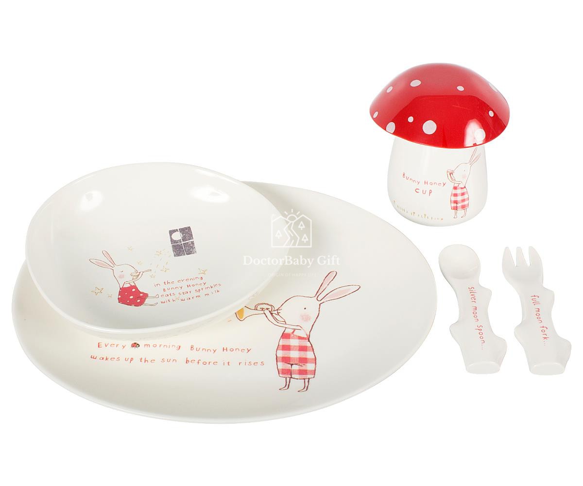 No support for backchanging | mind beware with mushrooms cup bowls tray spoon fork egg cup 29-5100-00 red plaid rabbit 5 pieces