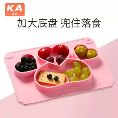 Baby plate adsorption anti-fall food bowl Cute baby eating plate training children's tableware grid silicone placemat