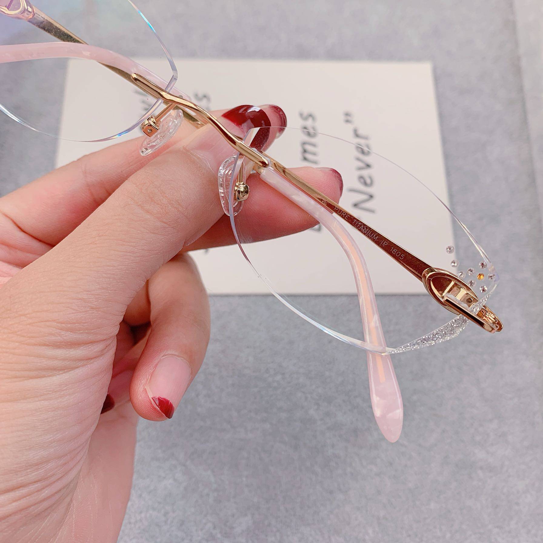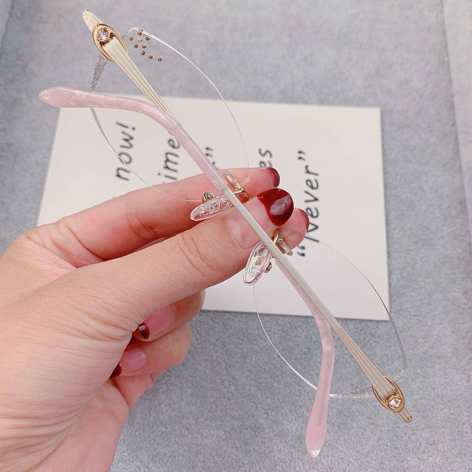 Sassy mirror Customized pure titanium no frame Myopia Glasses Female Diamond Cut Temperament Commute Glasses Fashion Beauty Cosmetic Mirror Accessories