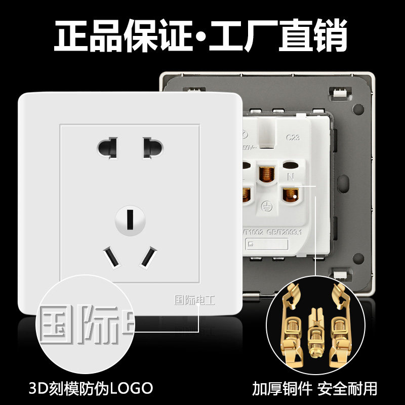 International Electrician 86 Type Concealed Triple Hole 16A Air Conditioning Water Heater High Power Switch Socket panel Home Iwhite