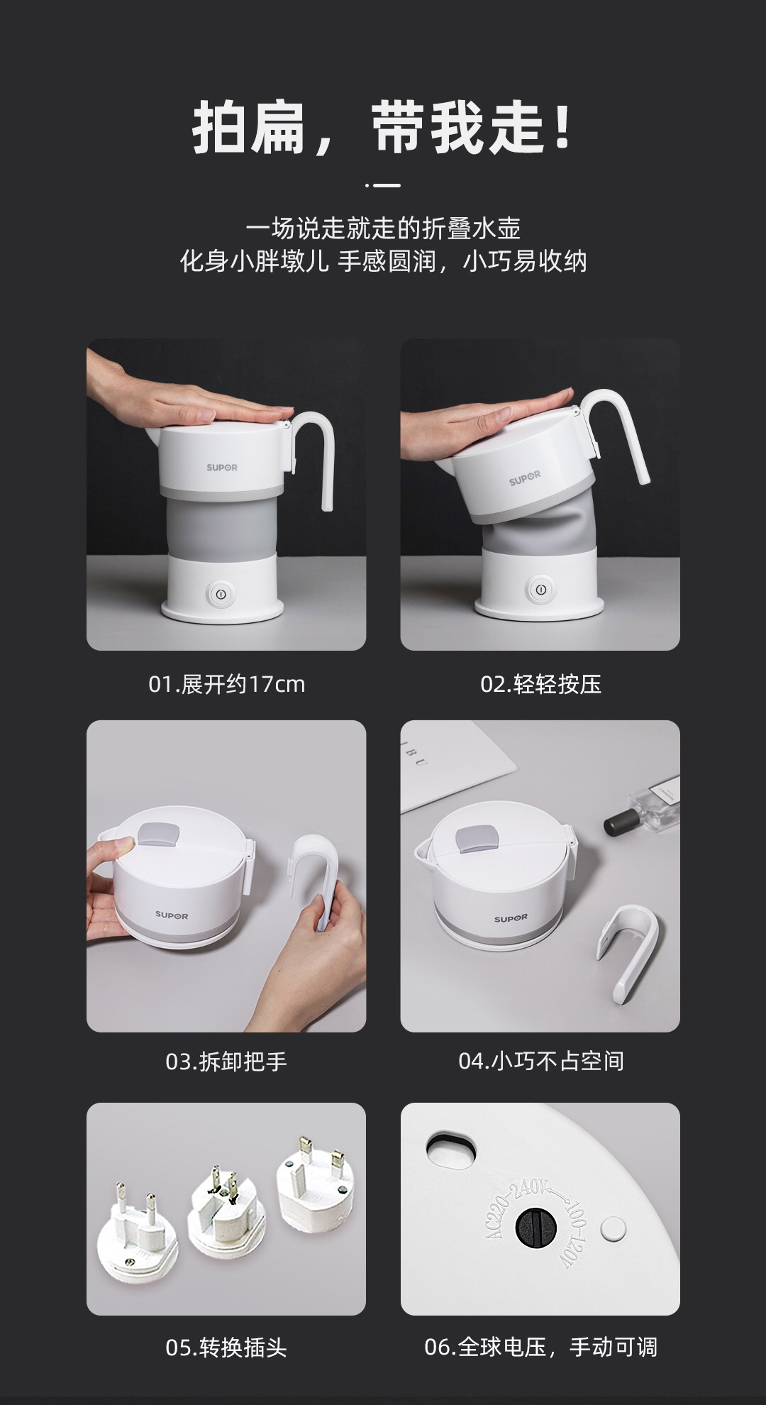 Supoir Travel Electric Kettle Mini Mini Small Portable folding Tourism Kettle Japan Germany