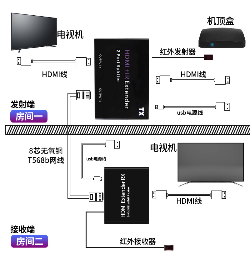 HD set-top box sharer hdmi single network cable distributor ir ir forwarding remote control backhaul compatible hdcp