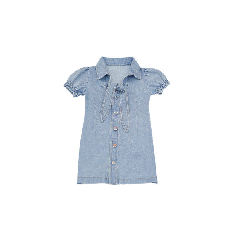 Parent-child dress mother girl skirt slim tie denim skirt children's dress 2022 summer dress new foreign trade children's wear