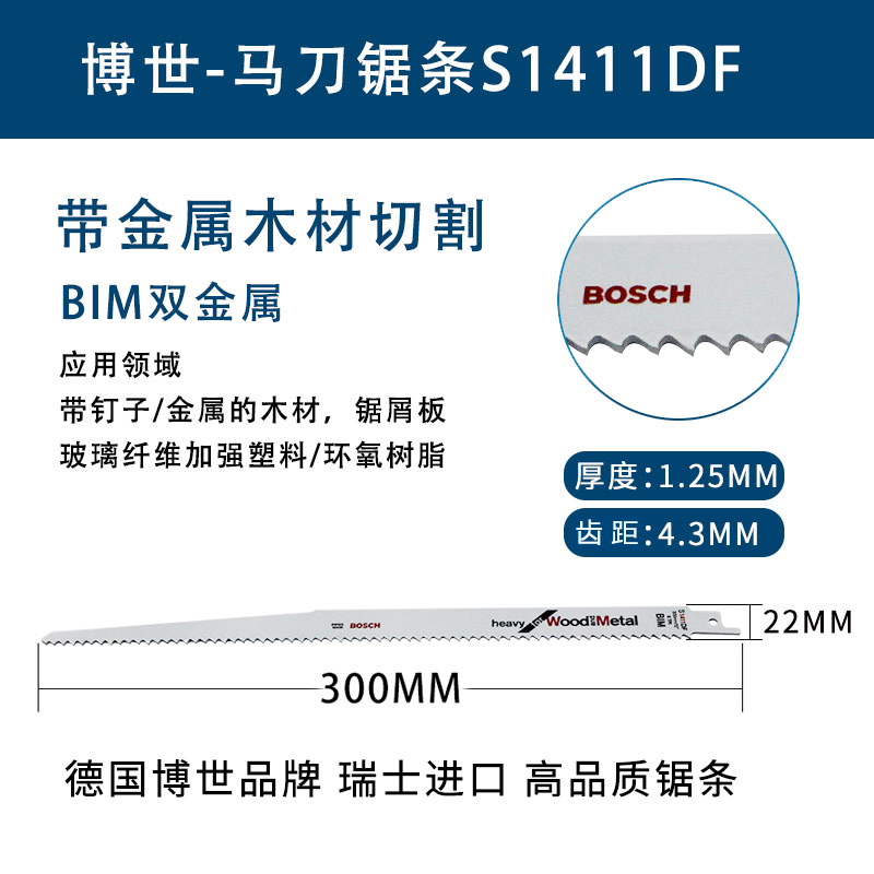 BOSCH SABER SAW BLADE S1411DF WITH METAL WOOD PLASTIC CUTTING SAW BLADE LONG 300MM RECIPROCATING SAW BLADE