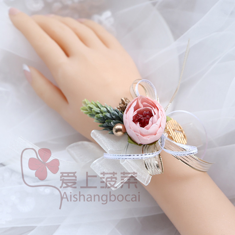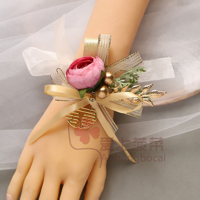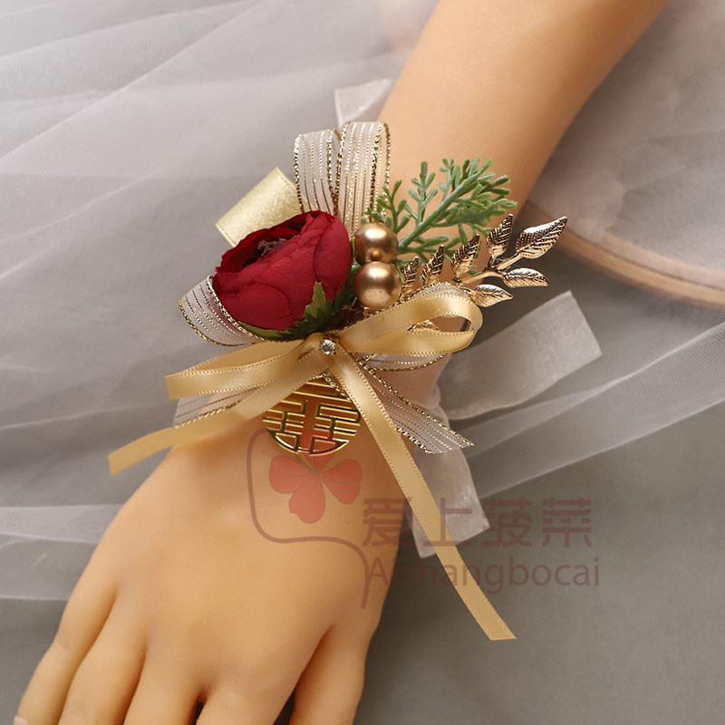 Korean style meritocratic bride's wrist flower bridesmaid's sister's hand flowers red knot wedding chest flower groom bridegroom
