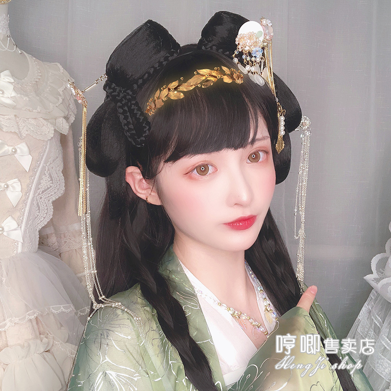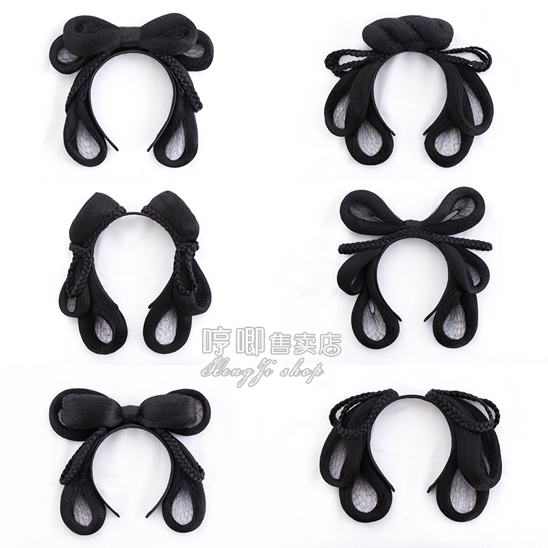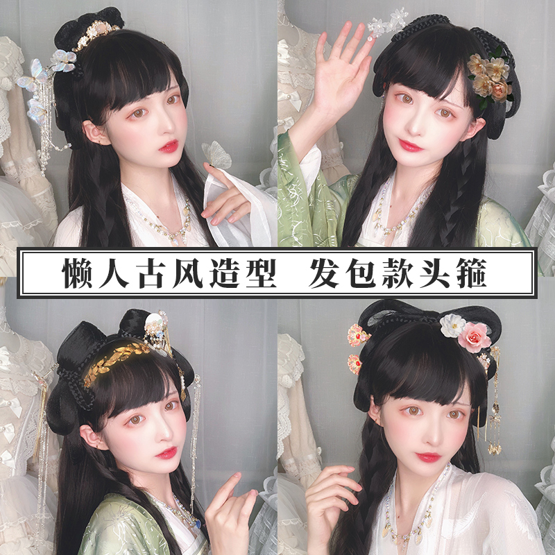 Hum home ancient style hair band lazy man hair bag hand remnant party wig headband integrated hair sideburns Hanfu costume styling accessories