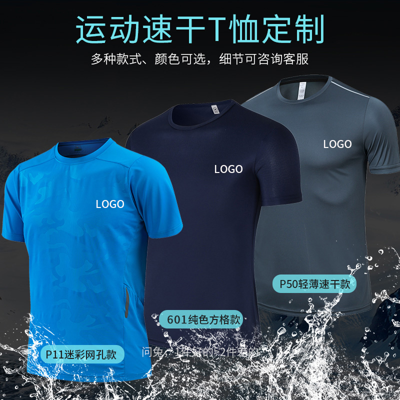 Quick-drying T-shirt custom men's overalls short-sleeved shirt printed logo marathon sports running team half-sleeved dress
