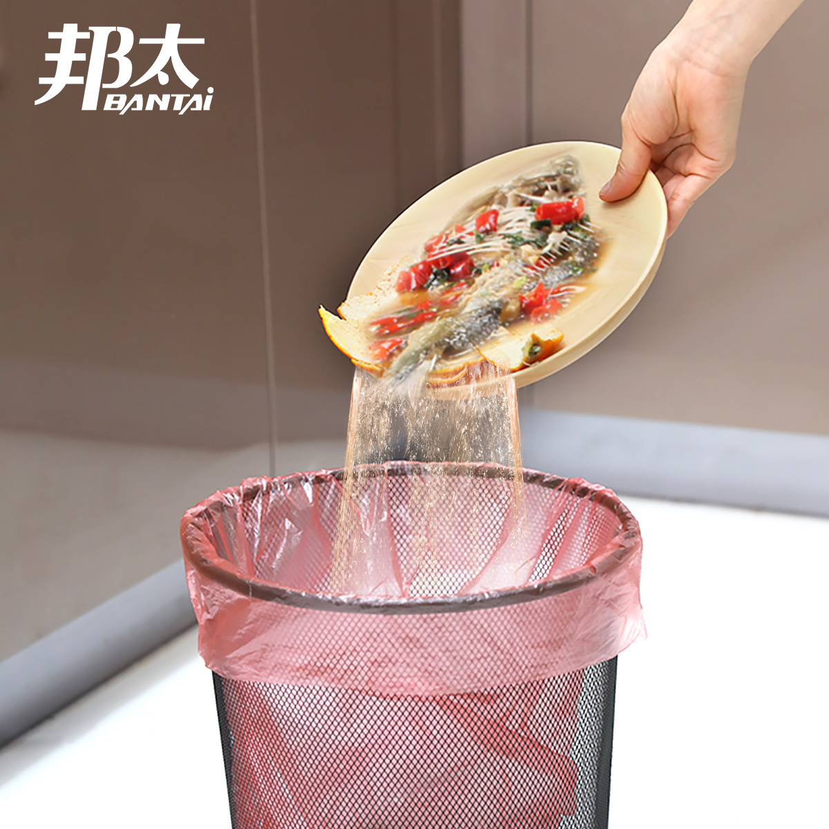 Bangtai garbage bag thickened portable household drawstring type large trash can plastic bag large black vest type