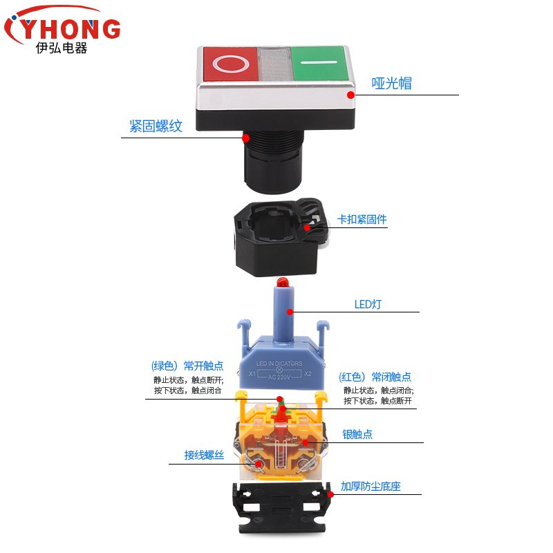 LA38-11D RG double bit with light button switch double double head start stop self-reset flat head button open-Taobao
