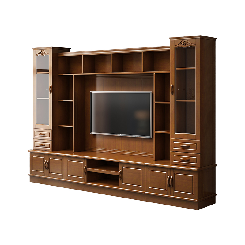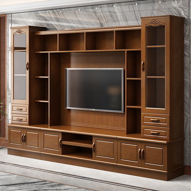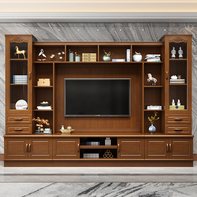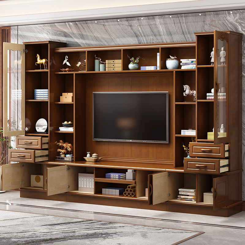 Chinese style solid wood TV cabinet combination modern living room wall-mounted TV background wall cabinet economical full wall decoration wine cabinet