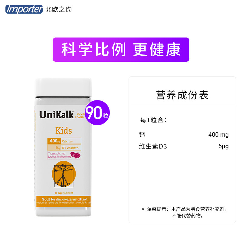 Danish Unikhalk Child Tonic Calcium Chewable Tablets Baby Calcium Tablets 90 Adolescent Students Grow VD Calcium Carbonate