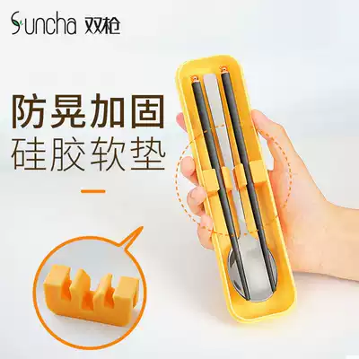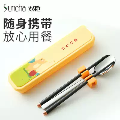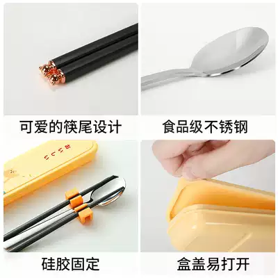 Chopsticks spoon set primary school tableware three-piece set of children's chopsticks single cute take-out storage portable tableware box