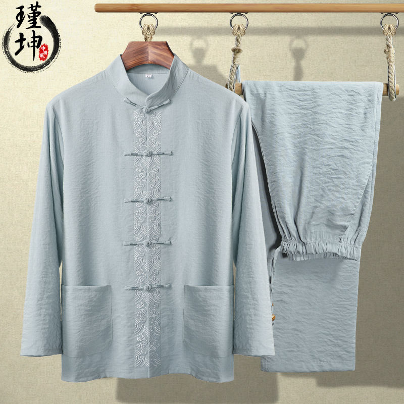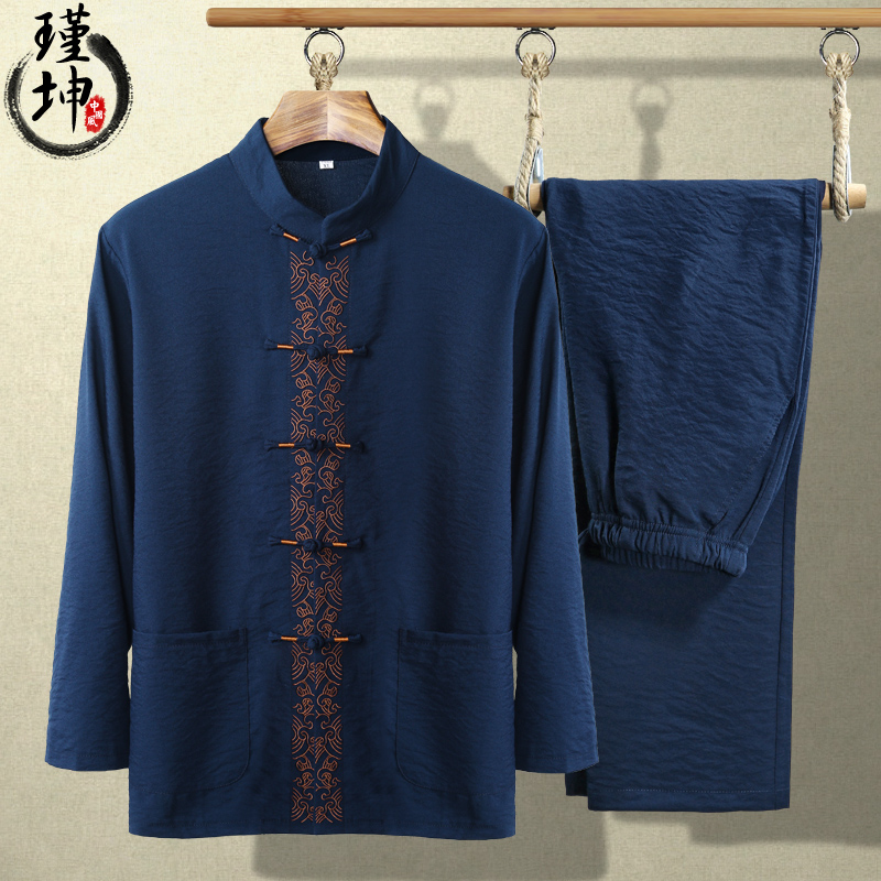Jinkun long-sleeved Tang suit men's thin suit Elderly clothes loose dad clothes Chinese style men's clothes Grandpa clothes