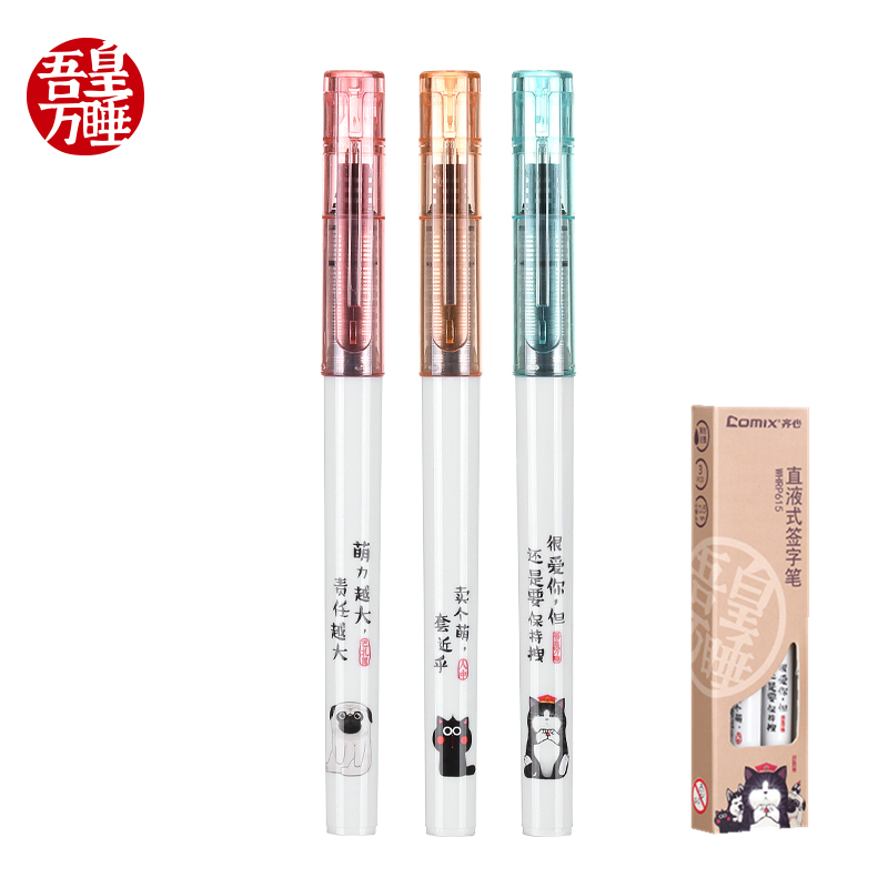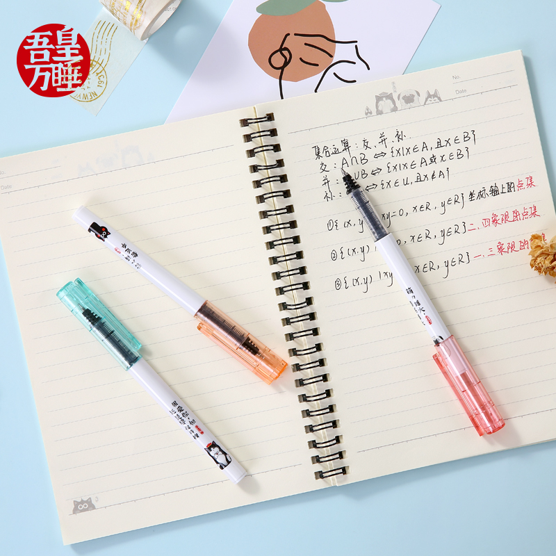 Qi Xin straight liquid signature pen Gel pen Water-based pen water-based ballpoint pen Wuhuang Wan Sleep IP joint large capacity bullet black water-based pen 0 5mm Creative cartoon gel pen for student examination