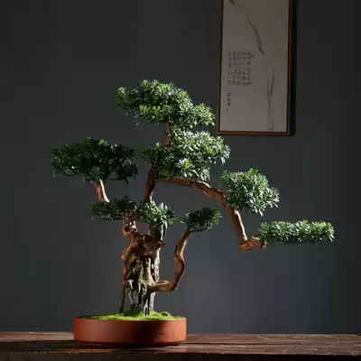 Rockery simulation tree feng shui rotation wealth ornaments welcome pine indoor living room hotel bonsai green plant Chinese gifts