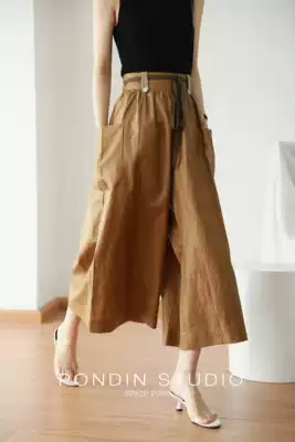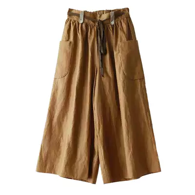 Fat Ding Matte Linen Loose ankle-length pants Japanese niche Kendo Pants Tend Waist Strap Wide Leg Casual Pants