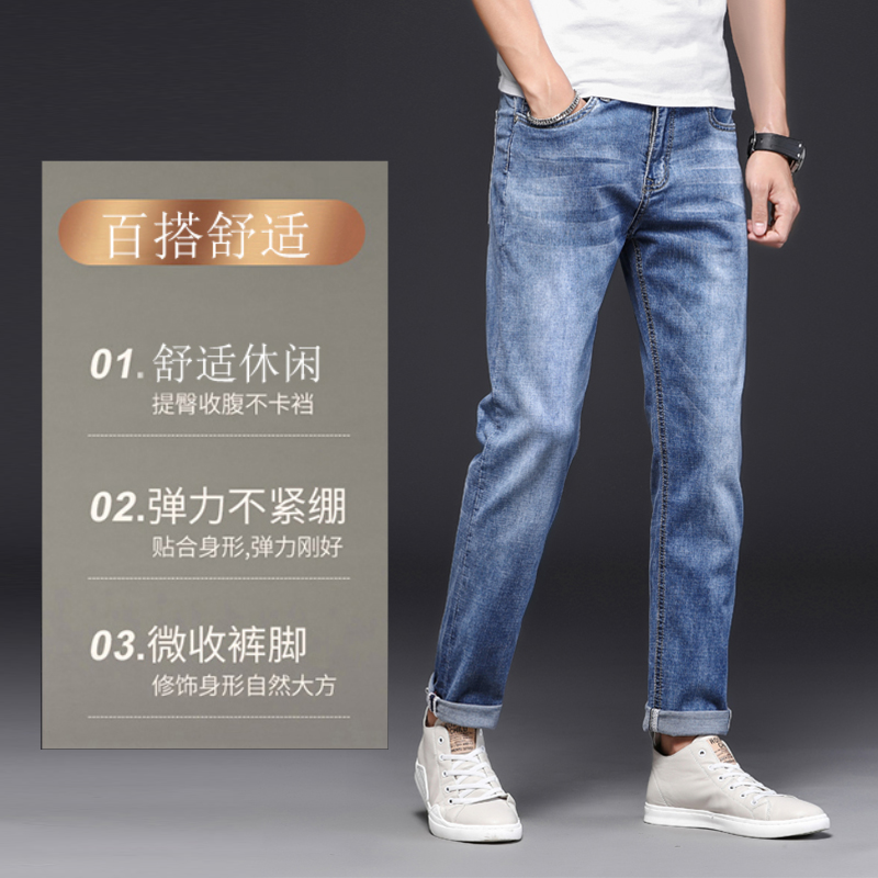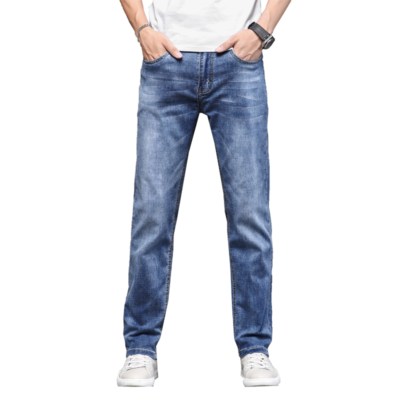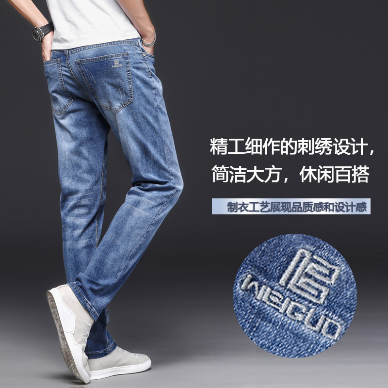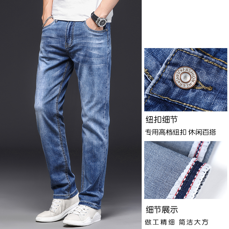 Jeans men's summer thin loose straight stretch men's Korean version of the trend youth wild casual trousers men