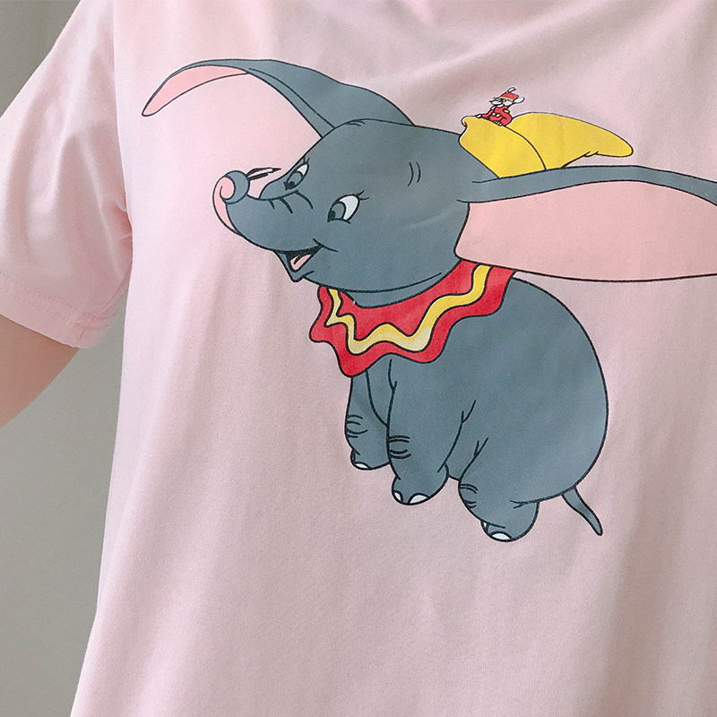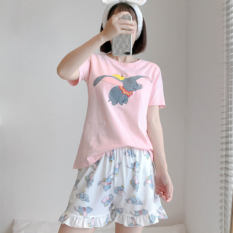 INS Dumbo cartoon cotton short-sleeved pajamas with chest pad female summer cute student shorts home service suit
