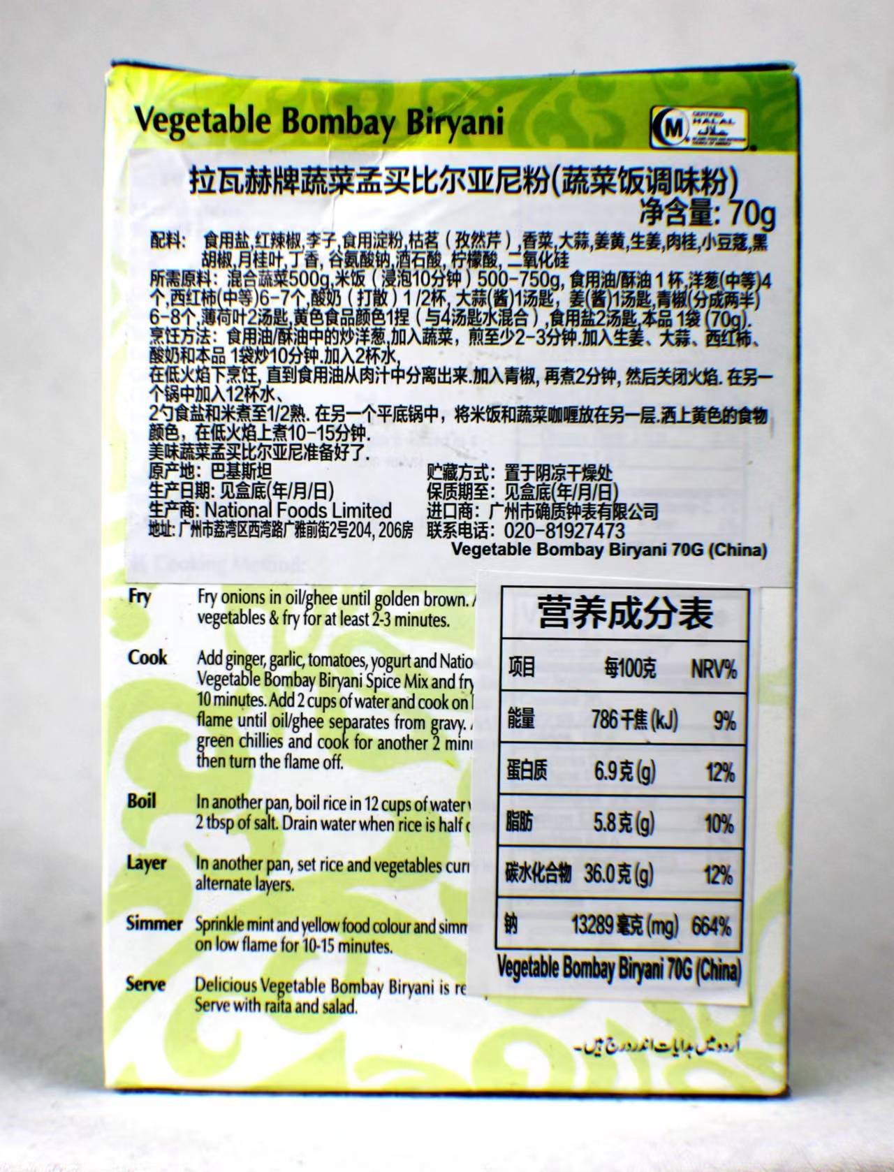 National Vegetable Bombay Biryani Masala Vegetable Bombay Biryani Powder