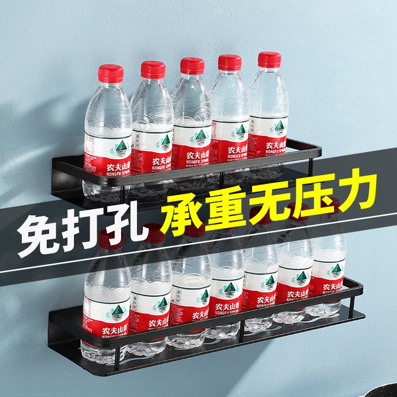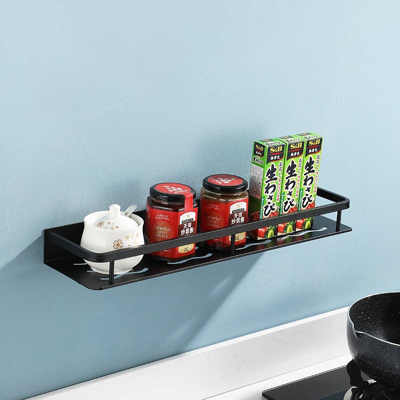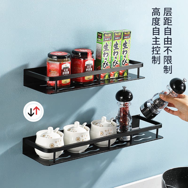 Black Space Aluminum Perforated Kitchen Shelf Wall Mount Household Seasoning Supplies Multifunctional Wall Organizer