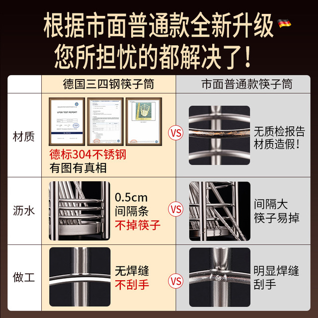 German chopsticks basket household 304 stainless steel household kitchen chopsticks bucket drain storage box storage rack chopsticks cage