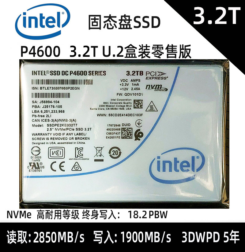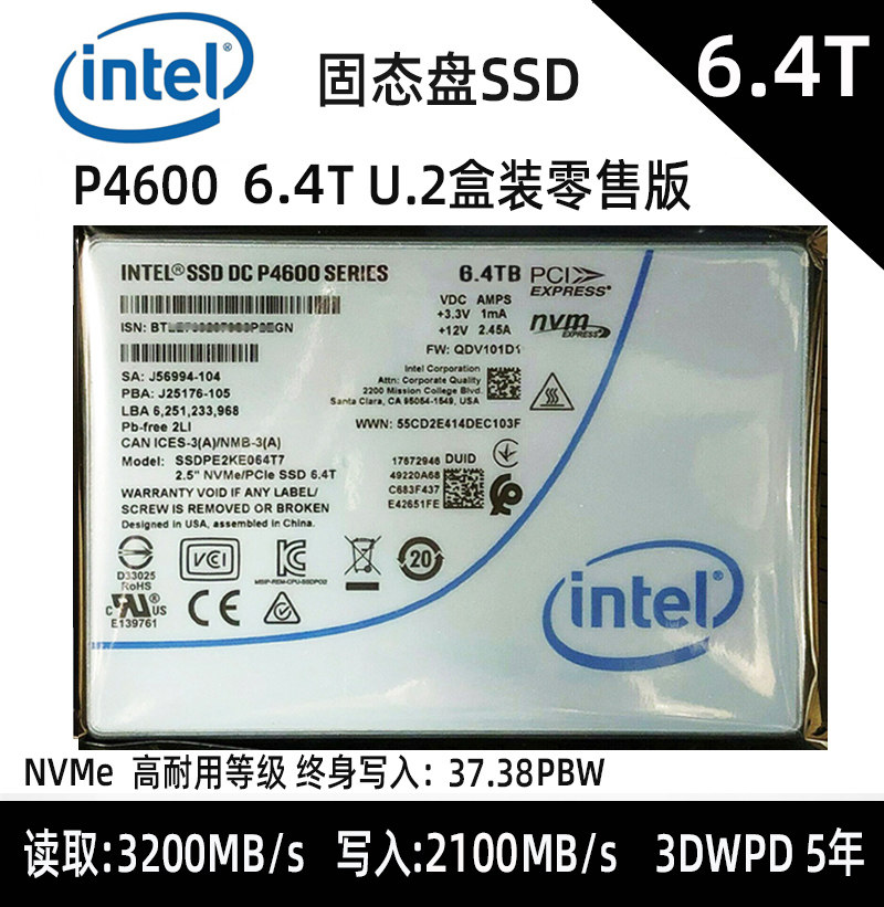 Batch Intel Intel P4600 2T 3.2T 6.4T U.2 SSD P4610 Long Life IOPS High