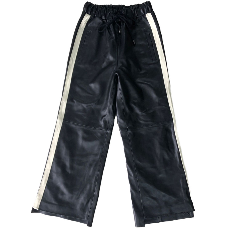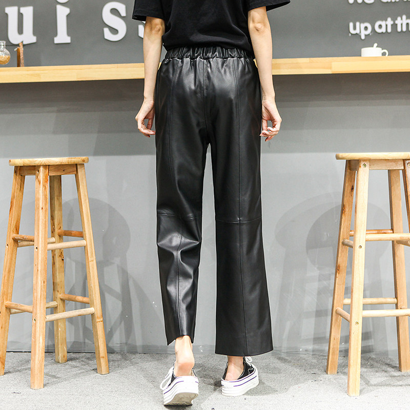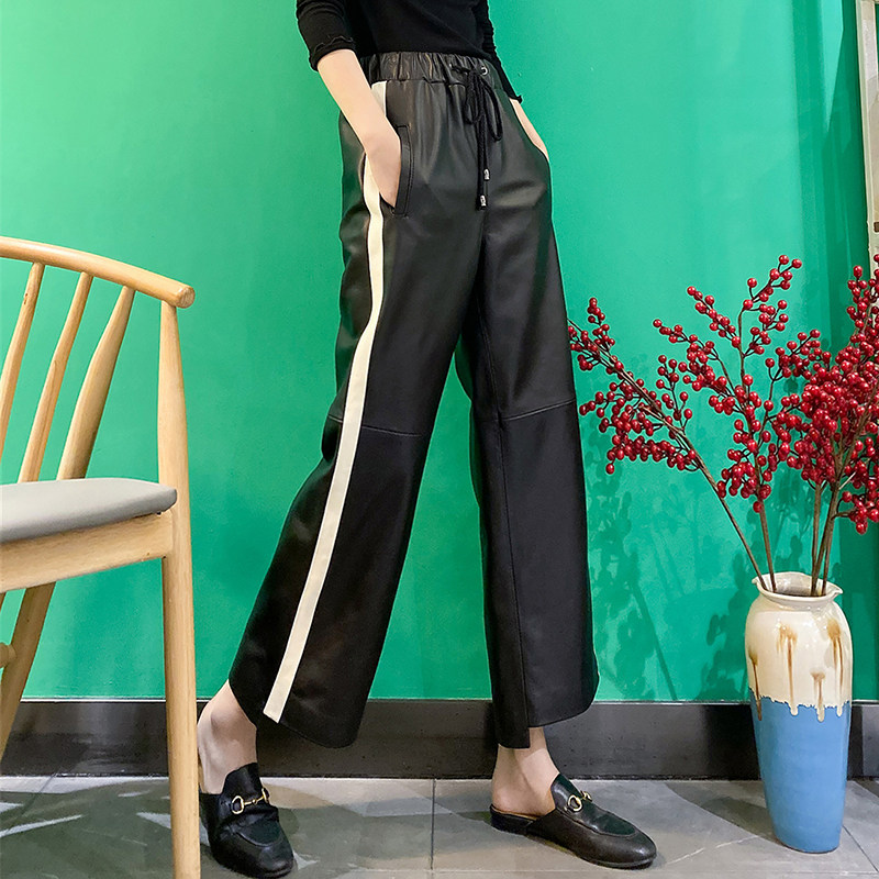 Real leather pants female sheep skin loose and thin legs ; new loose waist and casual nine - point sports pants
