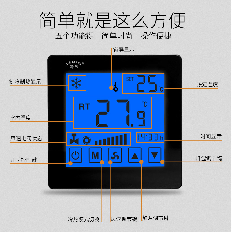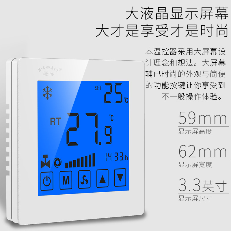 Haiji brand central air conditioning fan coil liquid crystal control panel Touch thermostat Digital display intelligent large screen switch