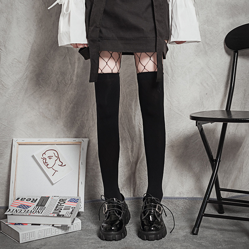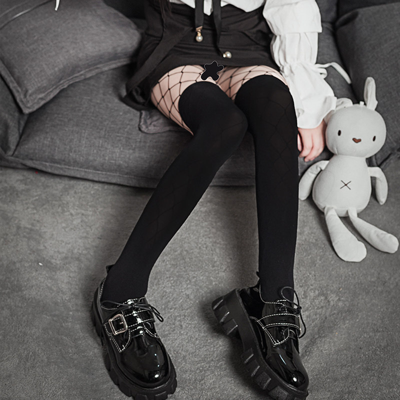 Over Knee Socks Women Ins Tide Dark Black Jk Socks Grid Fishing Nets Socks Dark Melania Lolita Sexy Long Silo Socks High Cylinder