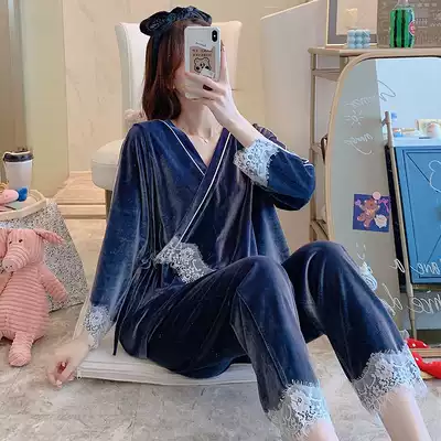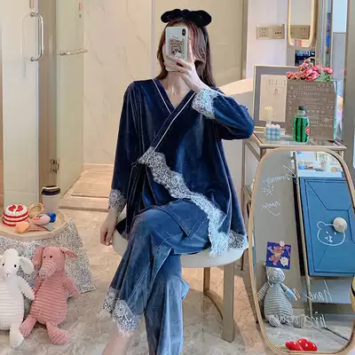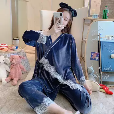 Jiaying velvet confinement clothes Spring and Autumn postpartum breastfeeding nursing home clothes waiting for delivery October 9 winter pregnant women pajamas 11