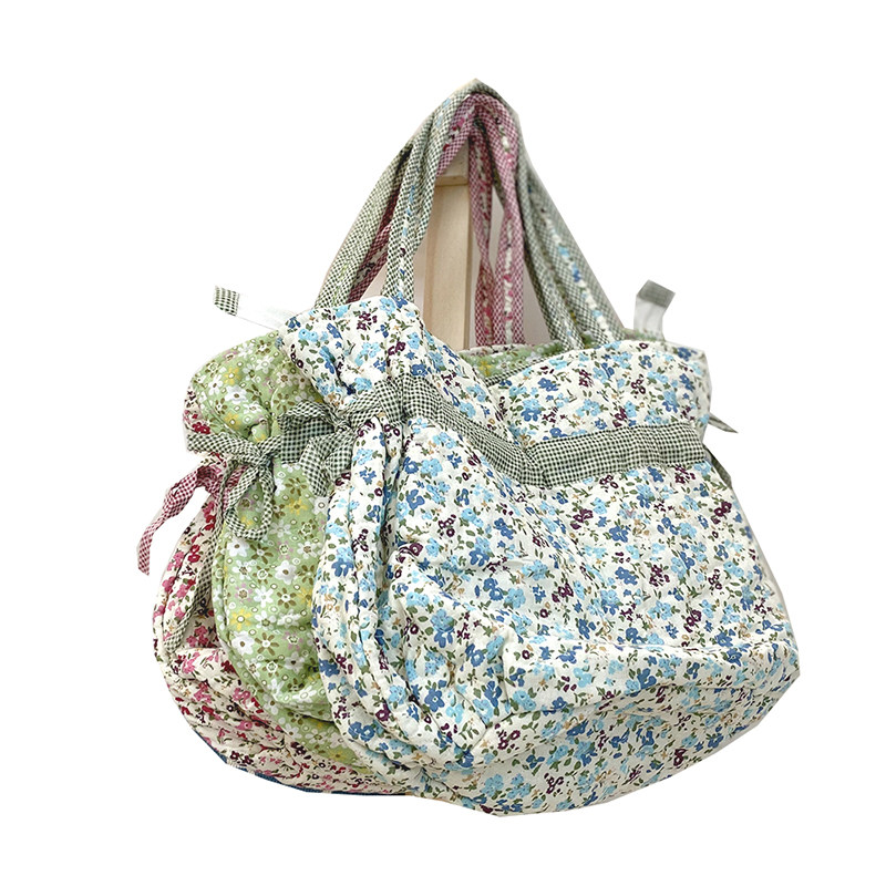 Korean pastoral cotton machine washable ladies free bag quilted shoulder bag large capacity mother bag bucket bag