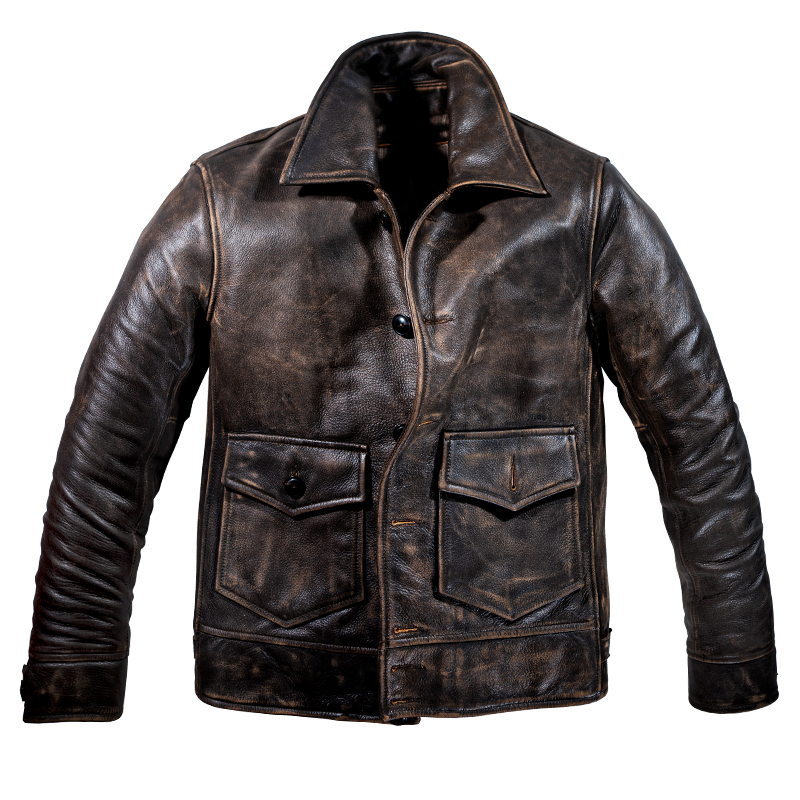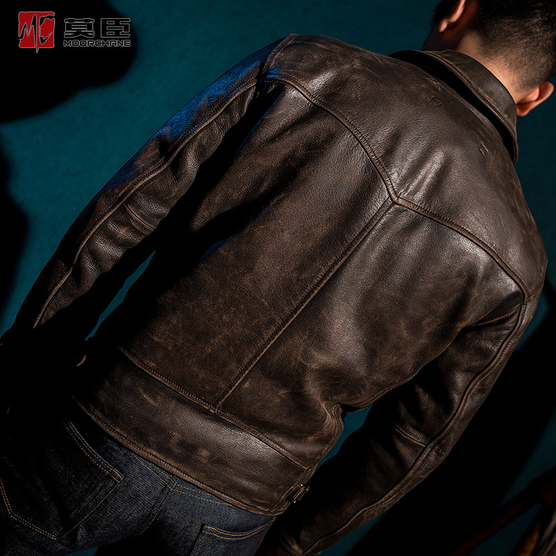 1920 American vintage old tea heart first layer pure cowhide men's leather leather Motorcycle leather jacket Autumn and winter jacket