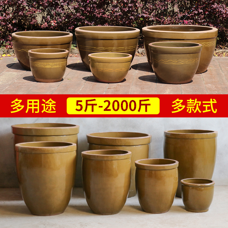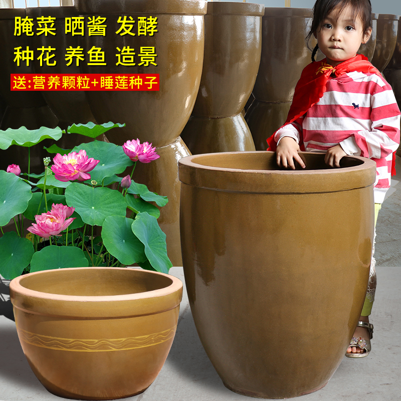 Large water cylinder fish farming for home water storage with ceramic old fashioned patio lotus cylinders Sleeping Lotus Basin Tutao Sauce Pickle Vat-Taobao